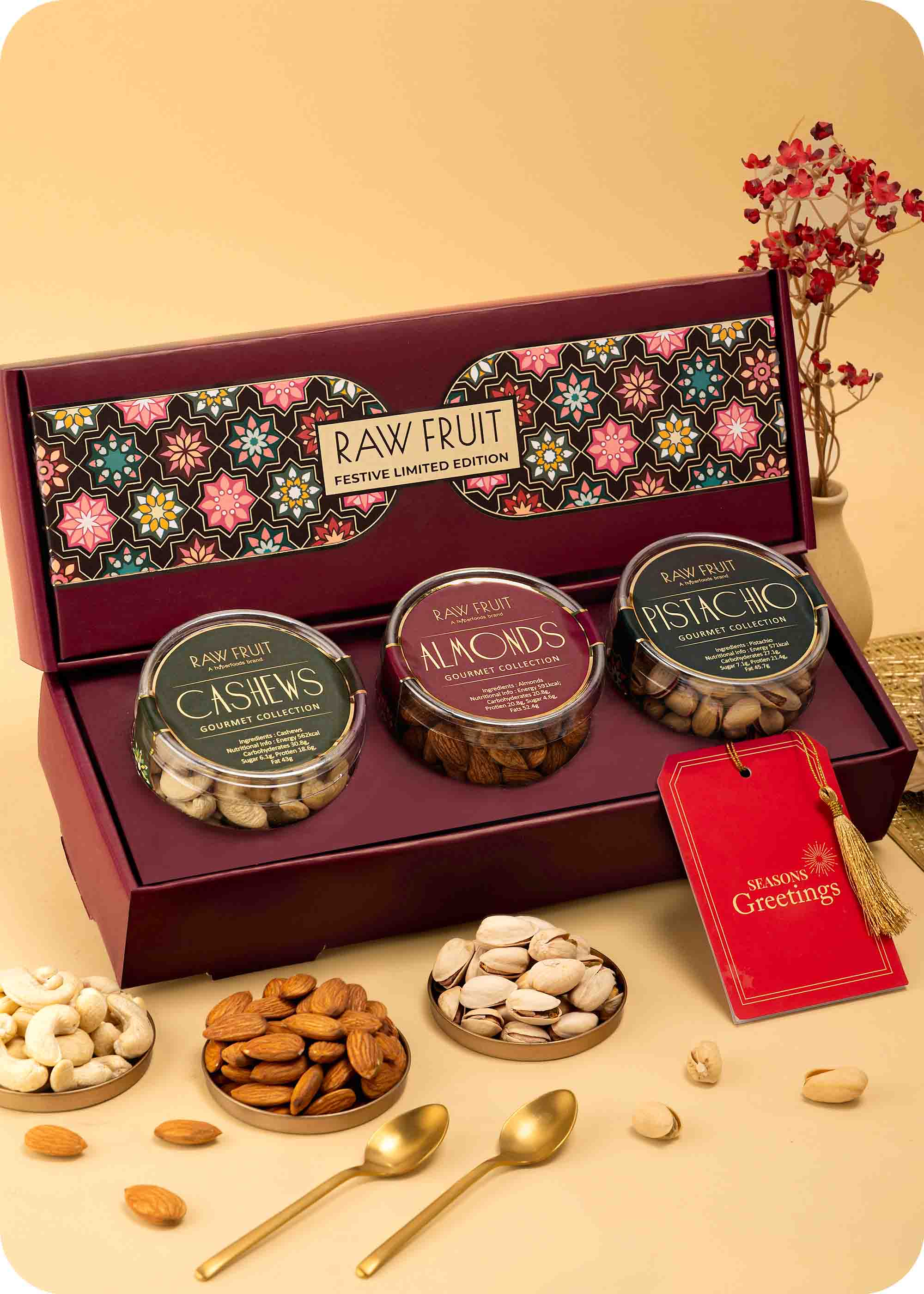 The box arrived in perfect condition. The dry fruits were fresh, and the variety was just right. Perfect for gifting!