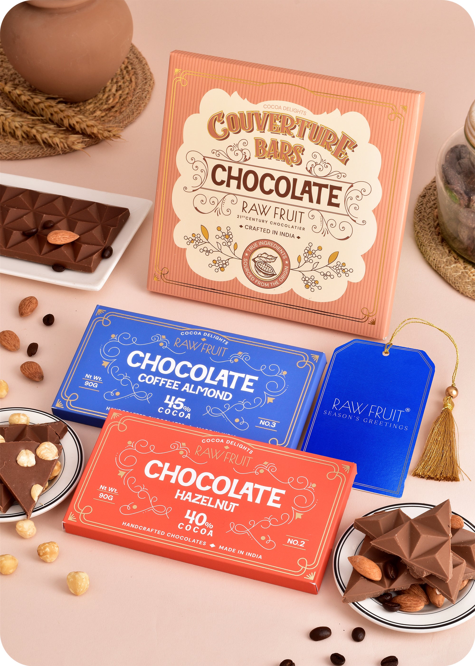 Chocolate Gift Pack Contains: Coffee Almond Chocolate Bar (1 Unit x 90g) & Hazel Nut Chocolate Bar (1 Unit x 90g) and a Greeting Card.