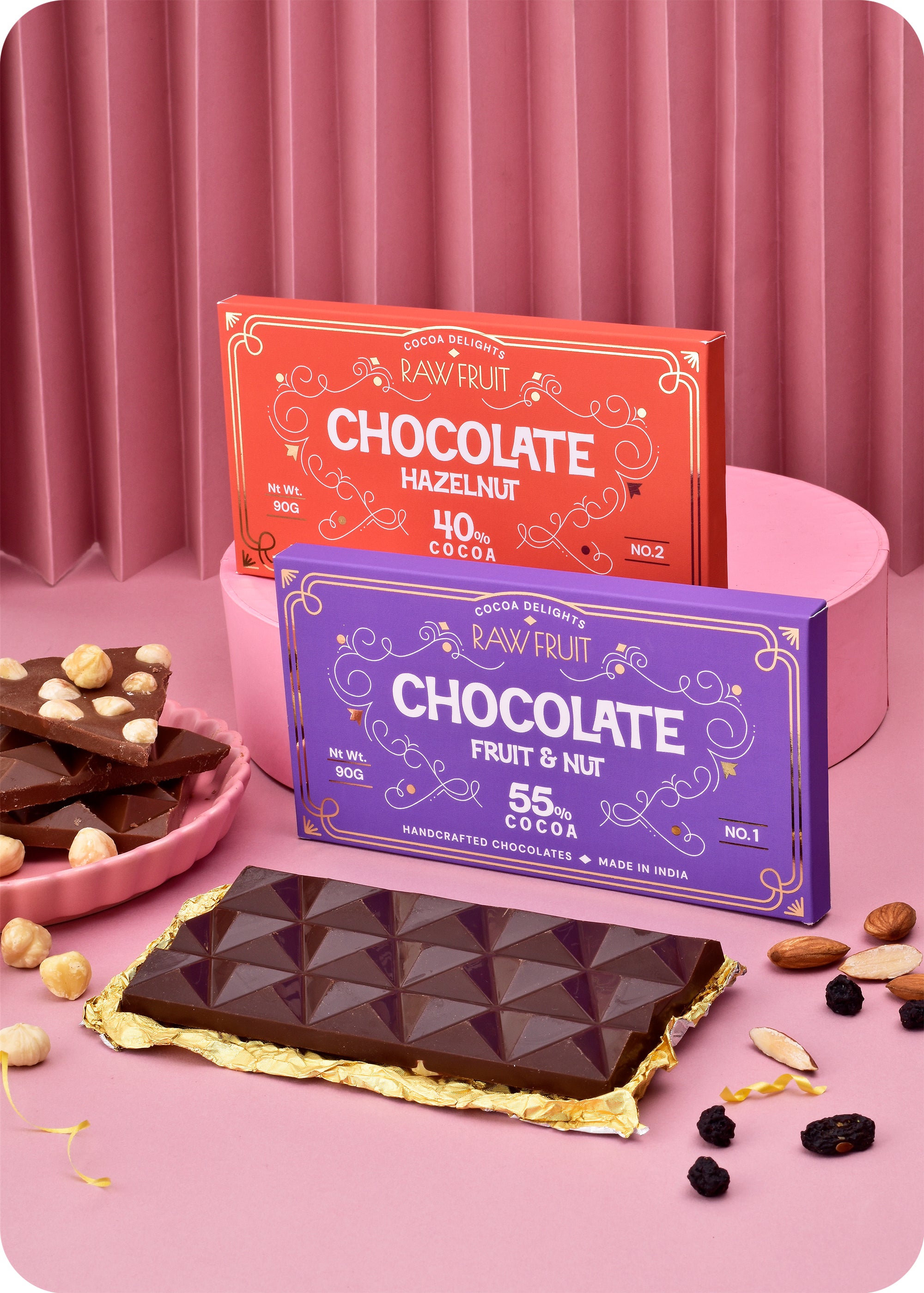 Chocolate Gift Pack Contains: Fruit & Nuts Chocolate Bar (1 Unit x 90g) & Hazel Nut Chocolate Bar (1 Unit x 90g) and a Greeting Card.